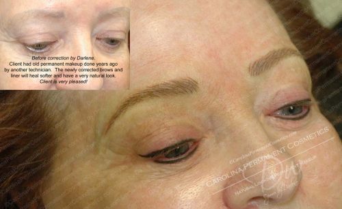Hair stroke brows are Darlene’s specialty. Tattooed hair strokes are being renamed almost daily. No matter what name someone gives them, the fact is you want them to look great and look natural! You just won’t find a better artist to do this job for you, and do it right! You may have to wait to get in, but it’s worth the wait! Don’t be in such a hurry that you settle for the place that can get you in the quickest, or the place that does it cheapest. This is your face! Nice work is not cheap, and cheap work is not nice!
